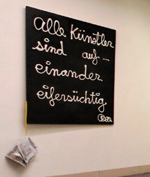 FAMA – nach alter Mythologie – nie schläft sie, zieht des Nachts durch die ganze Welt. Lässt sich nieder auf Türmen und Dächern, wo sie das Gerede der Menschen aufschnappt und beflügelt in Windeseile weiter trägt, Wahres und Falsches ausposaunt und so auch FLUXUS aus kleinen Anfängen zu großem Ruhm verholfen hat. Fluxus hat Regeln gebrochen, Skandale hervorgerufen, aber auch lebenslange Freundschaften gestiftet. Emmett Williams und Ben Patterson, die seit der ersten Stunde an den Fluxusfestivals teilgenommen haben, geben Zeugnis davon. Sie sind zur Eröffnung in Sindelfingen und werden uns überraschen – geistreich und humorvoll in hohem Alter. Arbeiten von Mary Baumeister, Ann Noël, und Ben Vautier zeigen Gemeinschaft und ego. |