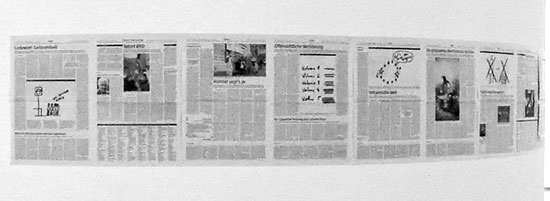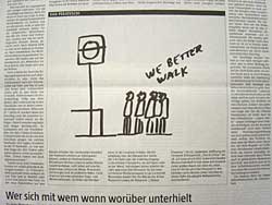 taz, die tageszeitung Dan Perjovschi Dan Perjovschi kommentierte für die Berliner Tageszeitung ‚taz’ 6 Wochen lang jeden Samstag das Geschehen in der Welt . Die Ausstellung zeigt die 6 originalen Zeitungsblätter, um seinen Anspruch auf Unmittelbarkeit im Kontext des Zeitgeschehens hervorzuheben. |